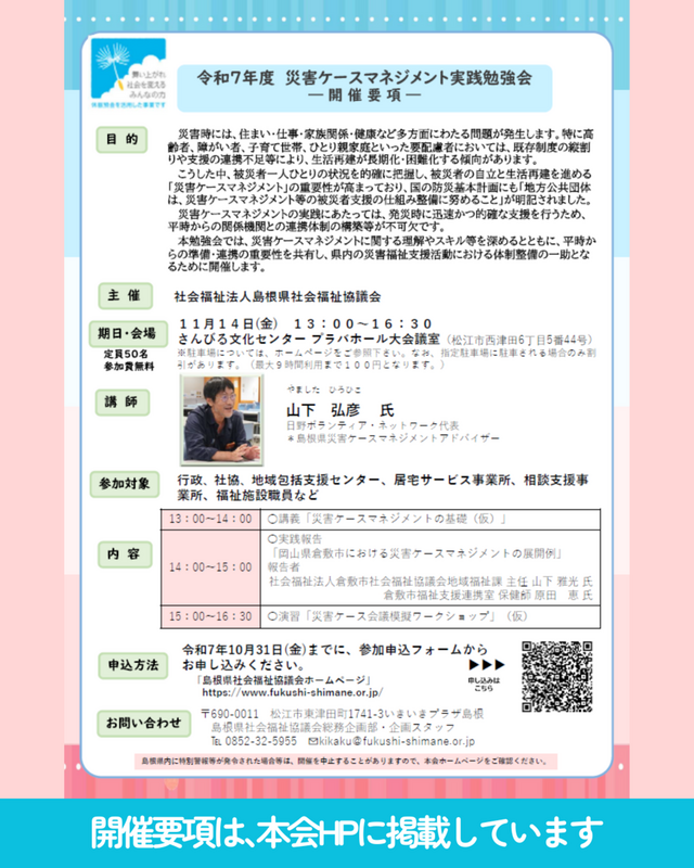 島根県心身障害児(者)親の会連合会 第50回大会・研修会を開催します |